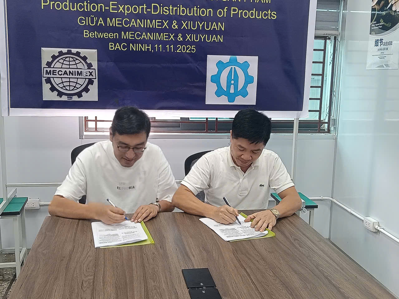 Bắc Ninh, ngày 11/11/2025 - Công ty TNHH MTV Xuất Nhập khẩu Sản phẩm Cơ khí (MECANIMEX) chính thức công bố ký kết Thỏa thuận Hợp tác Chiến lược với Công ty TNHH Điện Tử Chính Xác XIUYUAN Việt Nam.